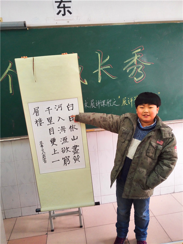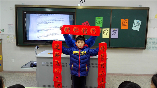 展示收获,精彩串串。一个学期,虽然很短暂,但小龙娃们在各方面得到了很多收获。看,那三个男孩子正像模像样地跳着街舞,潇洒的舞姿里洋溢着快乐的气息;小陈同学展示着自己一学期来的画画成果,好多幅成功的作品让同学们啧啧赞叹;三(3)班的教室里传出了铿锵的京剧演唱,一群孩子戴着脸谱惟妙惟肖地表演,赢得了师生们的阵阵喝彩,原来小伙伴们在展示语文融合课程中的收获呢;三(2)班的一位同学正向大家展示着自己写的春联,已经有好多同学向他预要春联了呢;年级走廊里,小提琴、吉他、笛子的乐声此起彼伏……