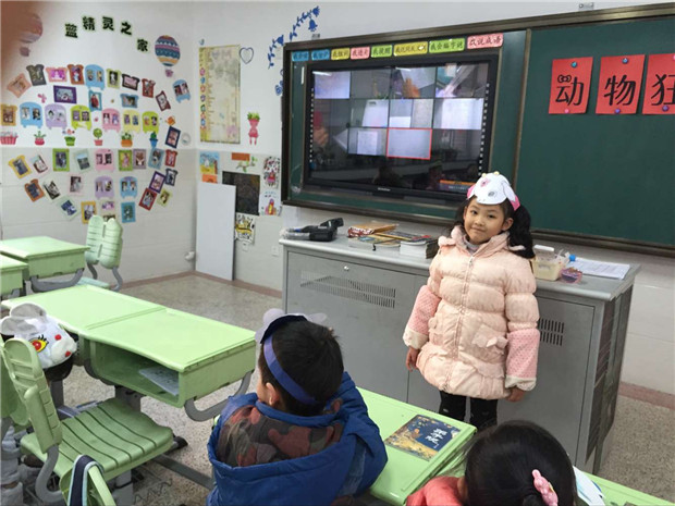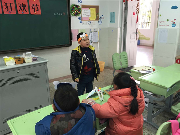 最后,小朋友戴上他们亲手制作的动物头饰,教室里出现了各种各样的动物,恐龙、长颈鹿、猎豹、小马、蜗牛、孔雀、狐狸、小老鼠等等,大家举行了一次联欢会。可是,有的小动物互相还不认识,要结交新朋友可是要做自我介绍的。这些“小动物”们可早就做好了充分的准备,大大方方地走上讲台介绍自己。本次融合课程,给了孩子们一种不一样的体验,孩子们在收获快乐的同时,不知不觉提升了语言表达能力和情景表演力以及动手实践能力。