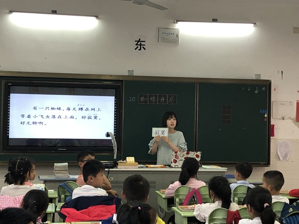 第一节课,二4班的朱佳丽老师带来了一节生动扎实的语文课——《蜘蛛开店》。上课伊始,朱老师让学生看图说一说动物的特点,调动了课堂氛围,朱老师巧识“店”字,让学生联系生活理解词语,深入浅出。之后朱老师带领学生学习课文,将蜘蛛开店的这个童话故事的结构梳理清晰。整节课中,教师教态自然,学生参与度高,教学氛围热烈。