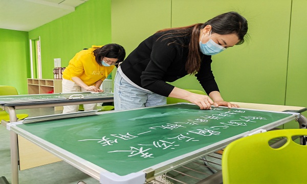 2022年4月19日,一至三年级的全体青年语文教师齐聚绿色教室,积极参与。比赛开始,老师们全情投入,一笔一画尽展风采,一钩一折无不体现着书写者的用心和才情。十分钟后,一幅幅整齐的粉笔字在老师的笔下孕育而生,跃然黑板上。有的行云流水,一气呵成;有的遒劲有力,挥洒自如;有的隽秀工整,自然灵动。