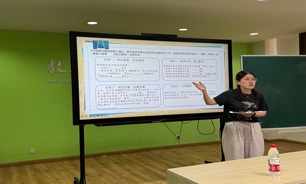 四年级宋莉莉老师分享了关于“升和毫升”课时的作业设计,通过“当一天健康小管家”的活动,巩固单位换算,建立量感,丰富升和毫升的直观体验,培养学生用数学的语言表达并解决实际问题,提升学生综合素养。