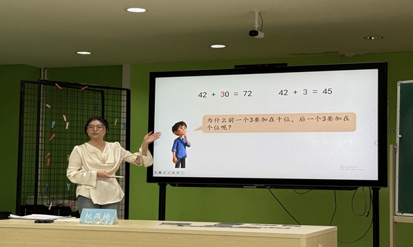 活动伊始,五位青年教师进行了精彩的无生试讲。李欣薇老师执教的《两位数加减两位数》,巧妙利用直观学具,引导学生理解相同数位相加减的算理本质。王艳茹与路楠老师同课异构《笔算两位数除以一位数》,二人均聚焦于如何将“42”分解为“30”和“12”的算理过程,深刻揭示了除法是计数单位逐级细分的过程。宋莉莉与孙秀娟老师共同执教了《小数加减法》,都将课堂重心聚焦“小数点要对齐”的算理过程。